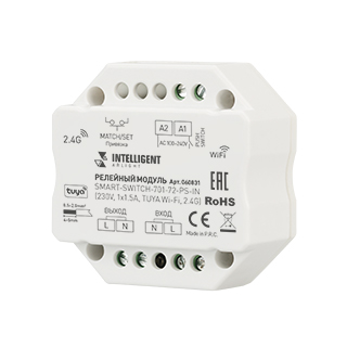 INTELLIGENT ARLIGHT Релейный модуль SMART-SWITCH-701-72-PS-IN (230V, 1x1.5A, TUYA Wi-Fi, 2.4G) (IARL, IP20 Пластик, 5 лет) 060831 в Волгограде
