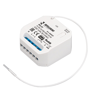 Релейный модуль предназначен для управления источниками света с напряжением питания 230В. С помощью конвертера Zigbee - Wi-Fi овместим с беспроводной облачной платформой TUYA через Zigbee 3.0. Управление со смартфона через приложение INTELLIGENT ARLIGHT, а также голосовым помощником АЛИСА от ЯНДЕКС. Устройство совместимо с клавишными панелями RF 433кГц серии KINETIC. Напряжение питания AC 100-240V, 1 канал управления, максимальная нагрузка 10А на канал, выходная мощность 1000 Вт. Габариты устройства 44x44x22.5 мм.