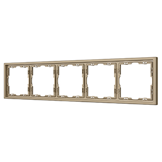 Рамка пластиковая на 5 постов, под встраиваемый механизм. Цвет - золотой, с Soft-Touch покрытием. Среднего уровня герметичности IP20. Ориентация монтажа горизонтальная.
