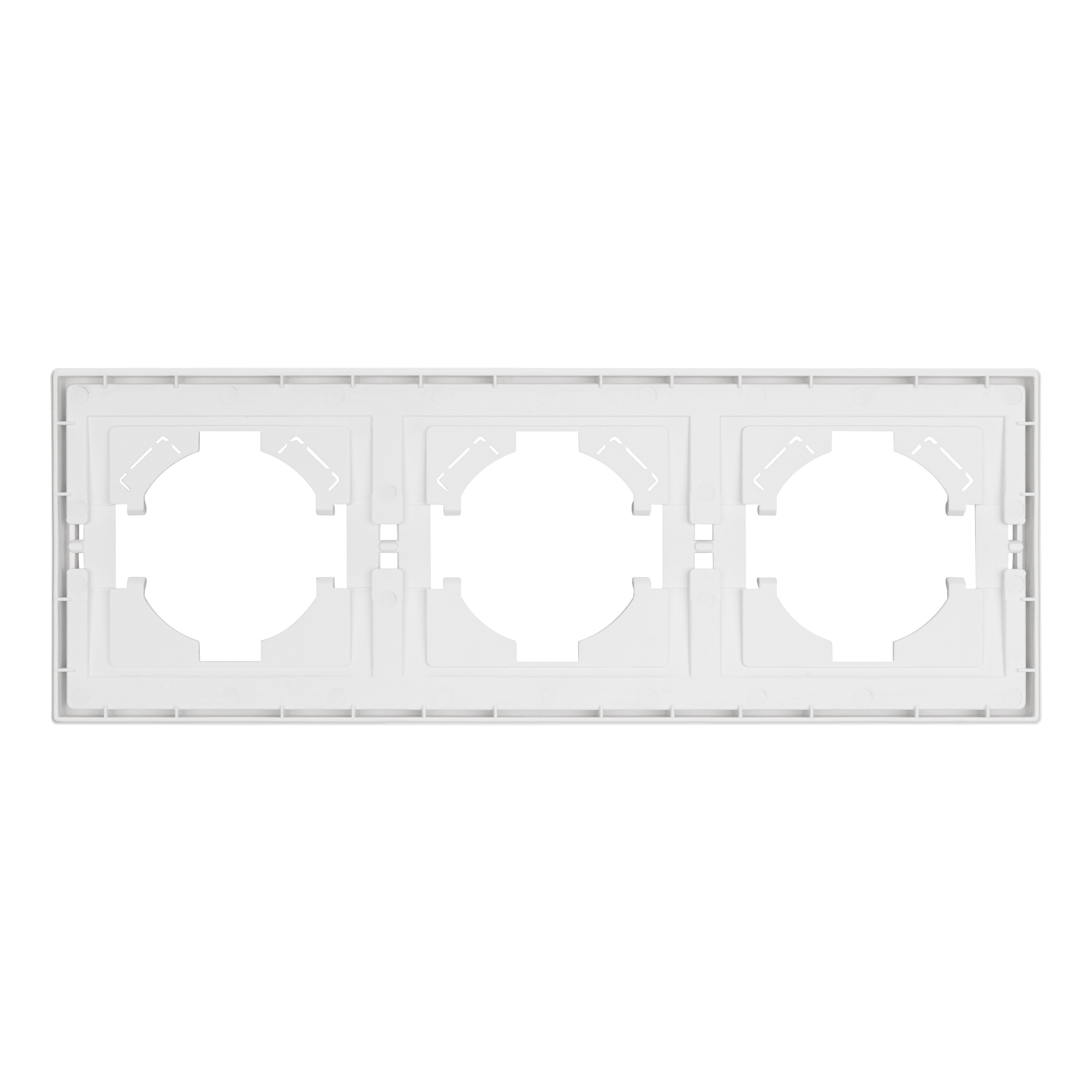 Рамка пластиковая на 3 поста, под встраиваемый механизм. Цвет - белый. Среднего уровня герметичности IP20. Ориентация монтажа горизонтальная.