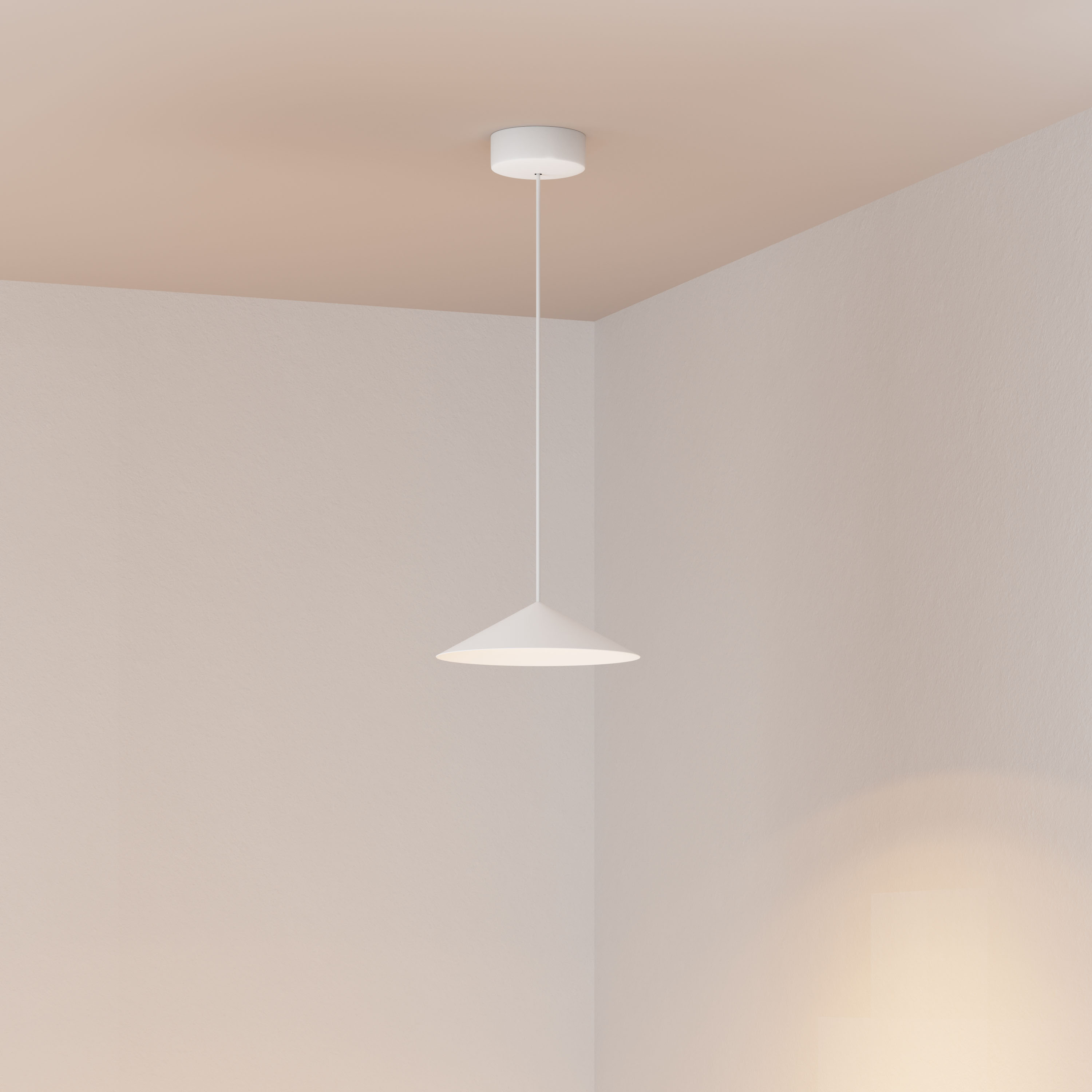 Подвесной светильник. Мощность 10 Вт, св. поток 600 лм, 60 лм/Вт, теплый 2700 K, CRI>94, угол 36°, напряжение питания 230 В. Белый корпус из алюминия в форме конуса с белой внутренней поверхностью, линза-рассеиватель из PMMA, степень защиты IP20. Размер: диаметр 300 мм, высота 80 мм. Монтаж подвесной, длина подвеса 2000 мм, регулируемая. В комплекте две чаши. Габариты чаши (встроенной) Ø80 х 41 мм, врезное отверстие Ø55 мм, габариты чаши (накладной) Ø110 х 25 мм. Драйвер 2,8-12В, 500мА, пульсация <1%. Управление по TRIAC.